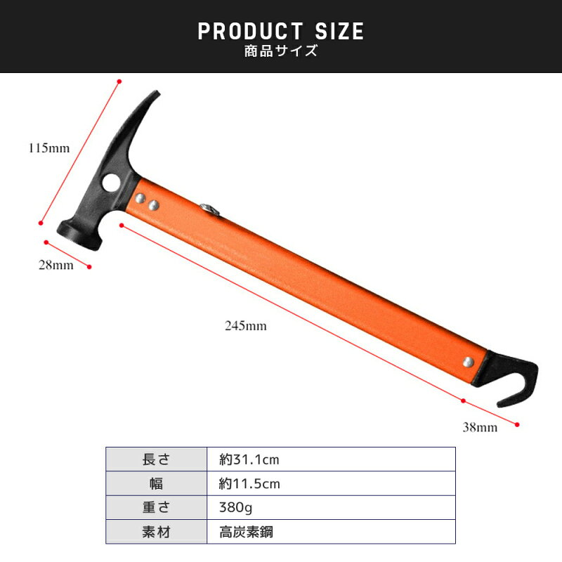 最安値 ペグハンマー 軽量 多機能 ペグ打ち ペグ抜き ペグ高強度鋼 アウトドア 登山 ツーリングキャンプ キャンプ場 Mjy オレンジの価格比較