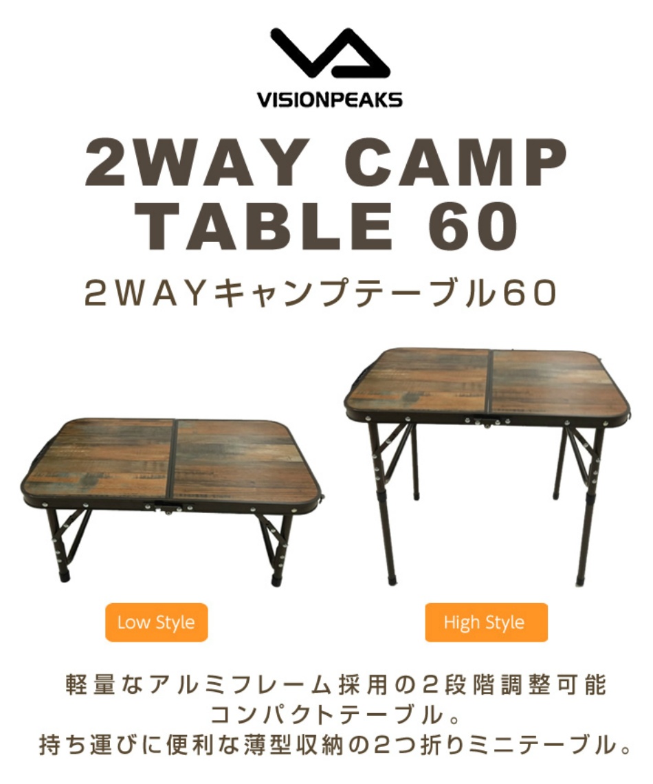 ビジョンピークス Visionpeaks アウトドアテーブル 60cm 2wayサイドテーブル60 Vpf01 スポーツ用品ならヒマラヤオンラインストア 公式